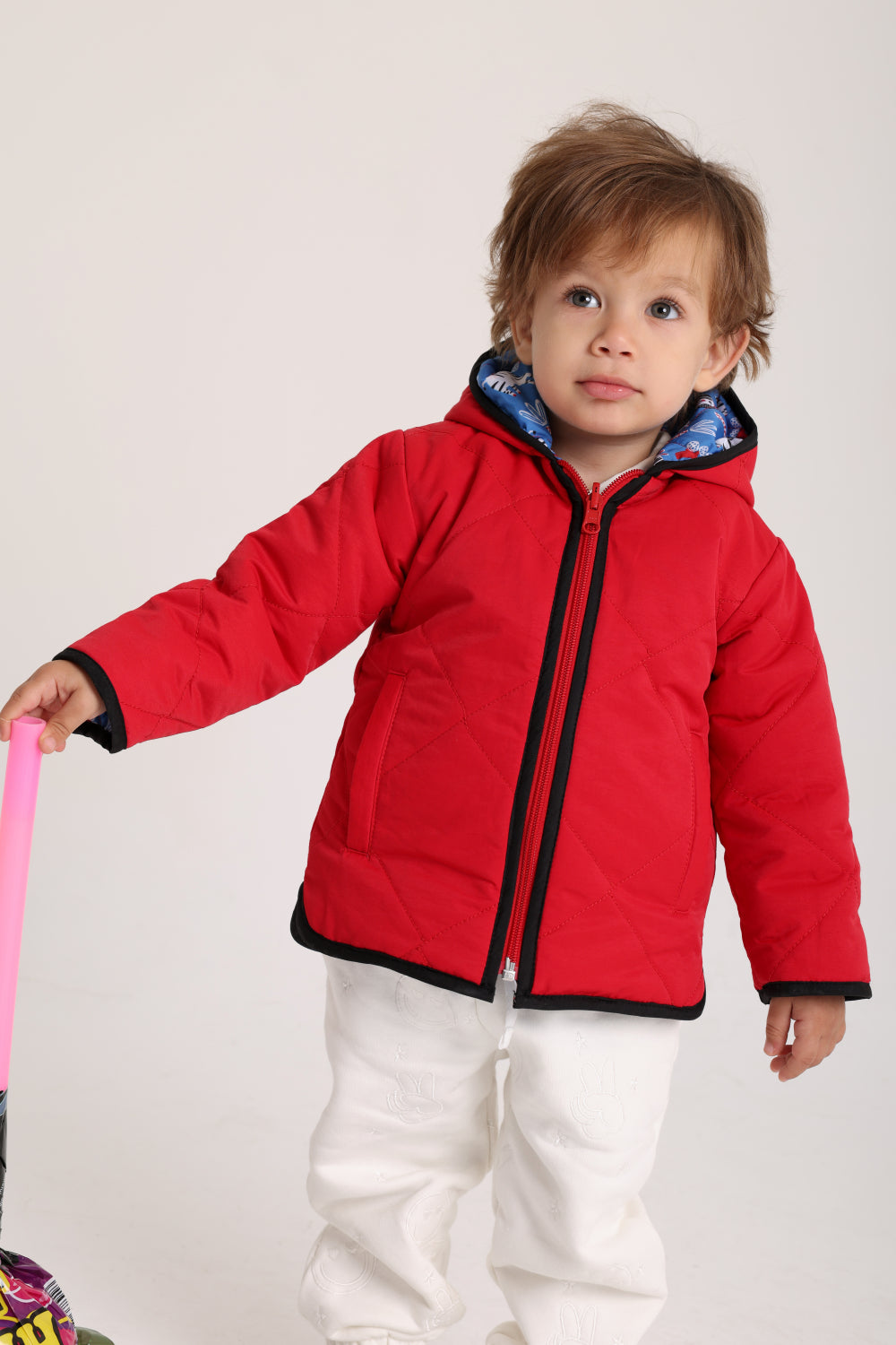 boys waterproof reversible jacket – red & babyblue
