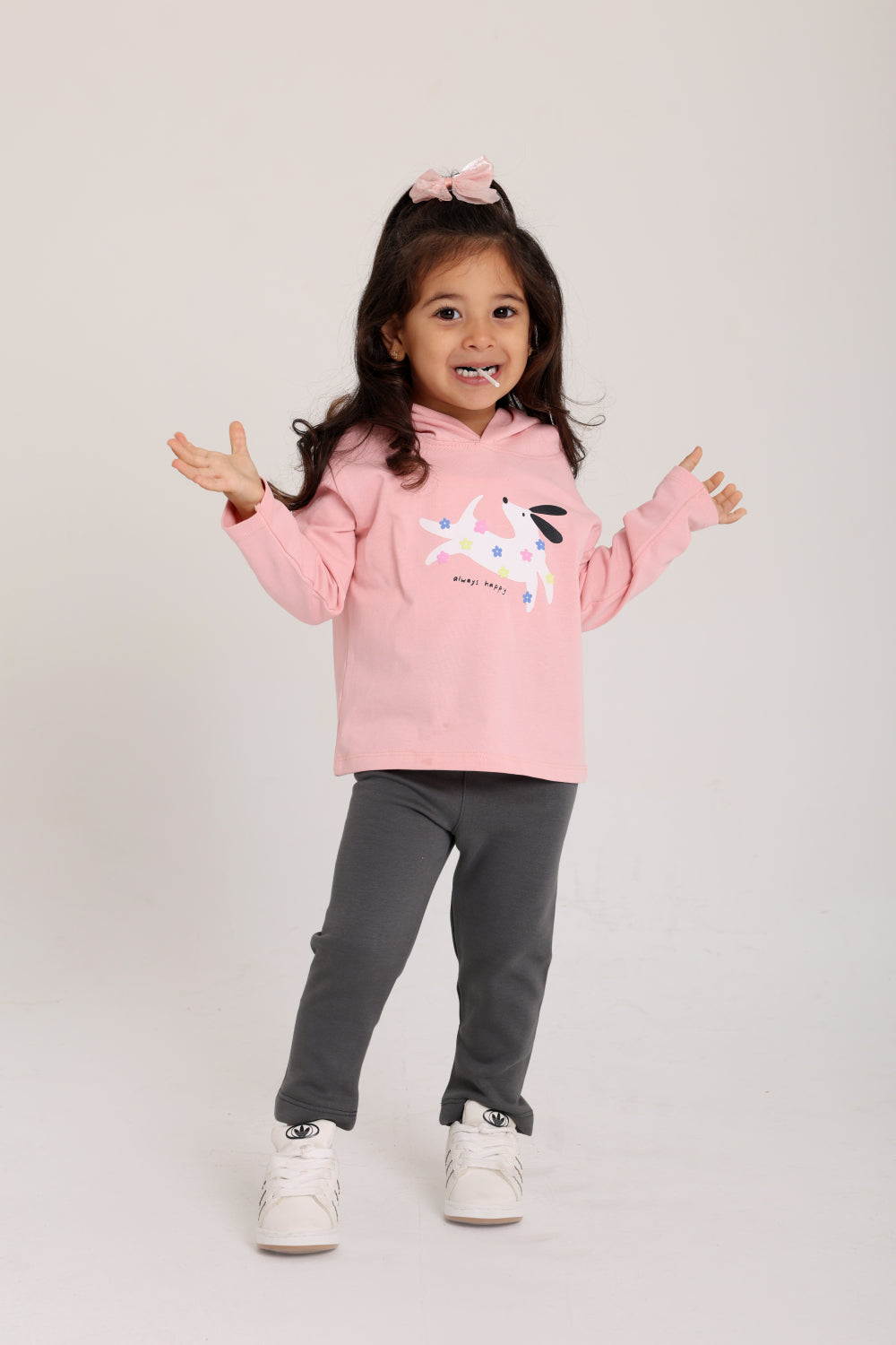 Keep your little one cozy and cheerful in this Baby Girls Cotton Hooded T-Shirt in simon featuring a playful "Always Happy" dog print. Made from soft, breathable 100% cotton, it’s perfect for everyday comfort with a touch of fun.