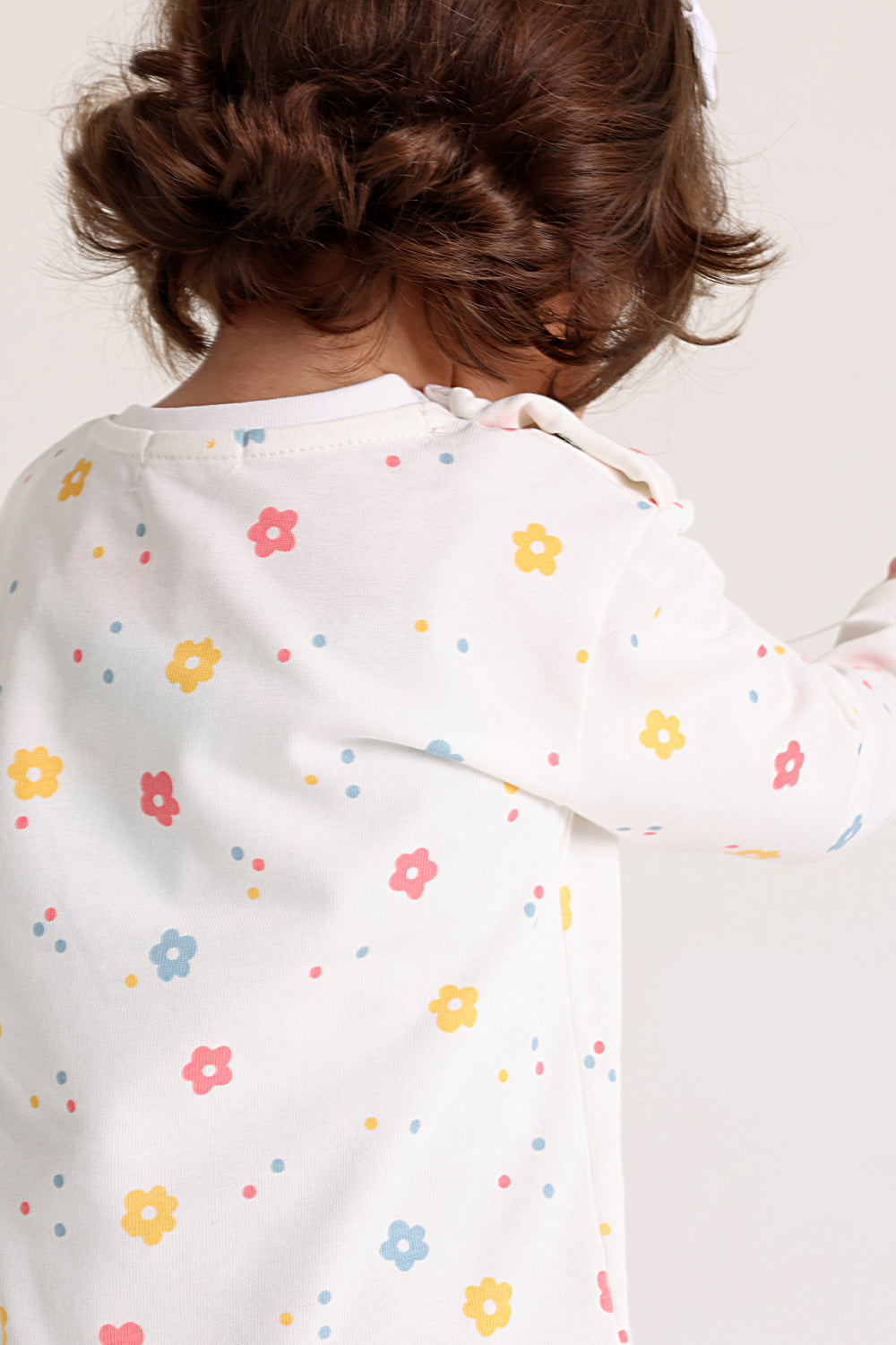 baby girls cotton outfit set – offwhite printed flowers short sleeves