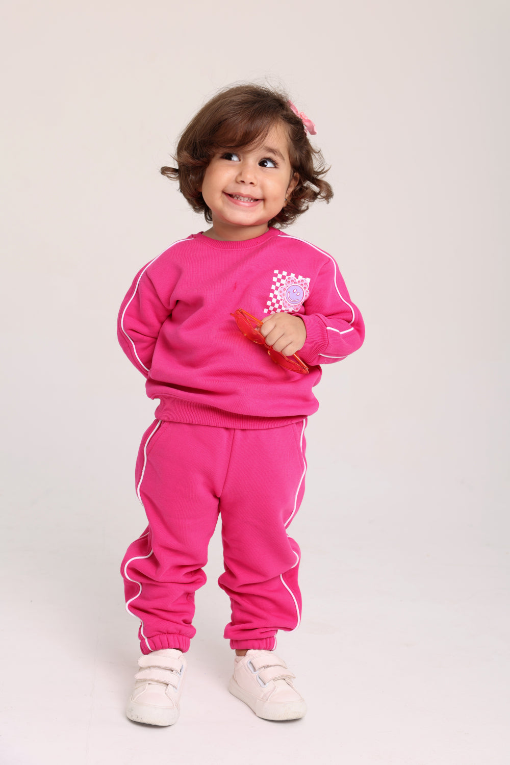 baby girls cotton sweatshirt – fuchsia with flowers print