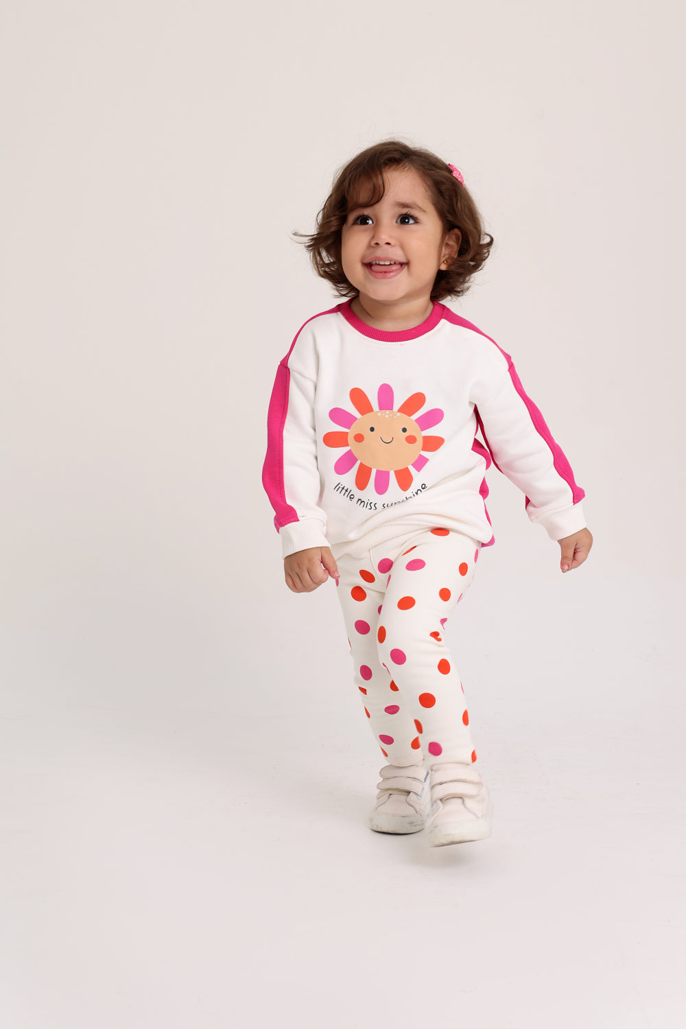 baby girls cotton outfit set – offwhite & fuchsia with "little miss sunshine" design