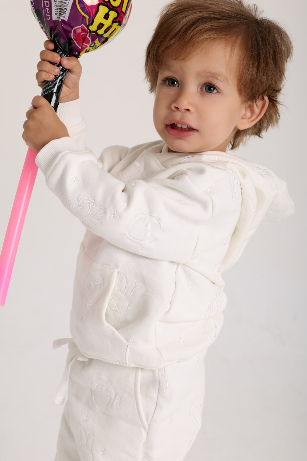 unisex cotton 2-piece outfit set – off-white with smiley faces