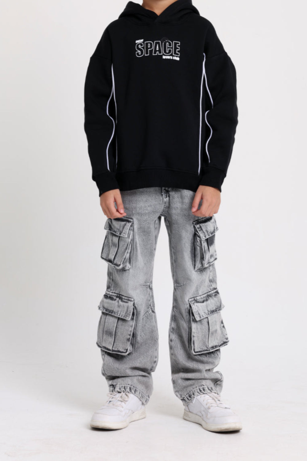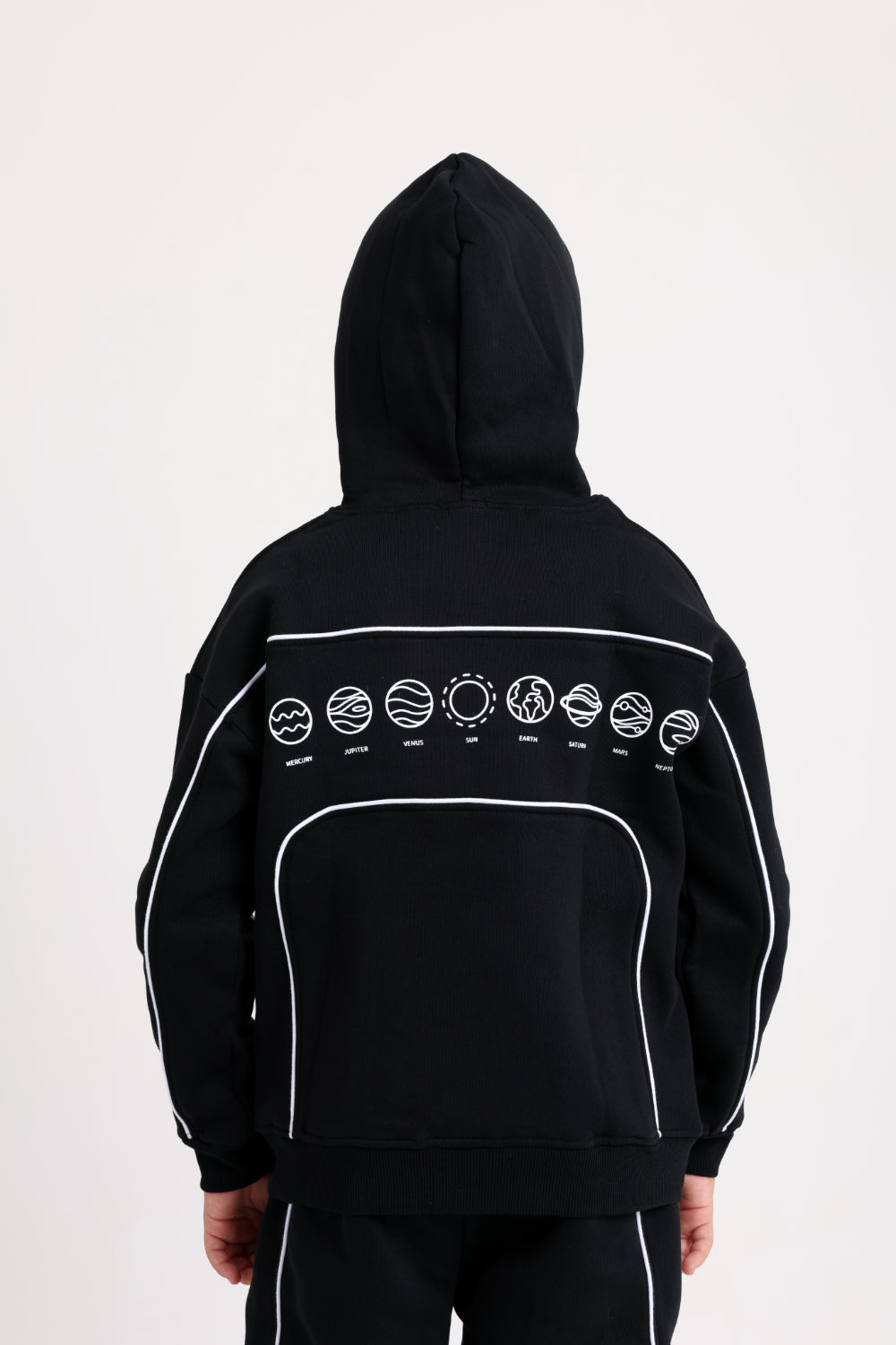 For little explorers who dream big, the "Outer Space" hoodie combines soft cotton comfort with a cool space-themed print. Perfect for everyday wear, it keeps him warm and ready for adventure.