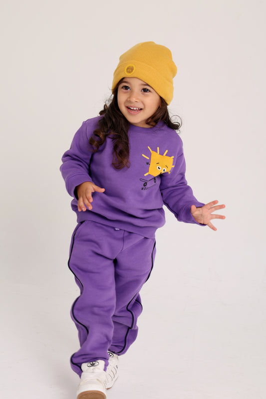girls cotton sweatshirt - purple with "smile garden - always happy" print